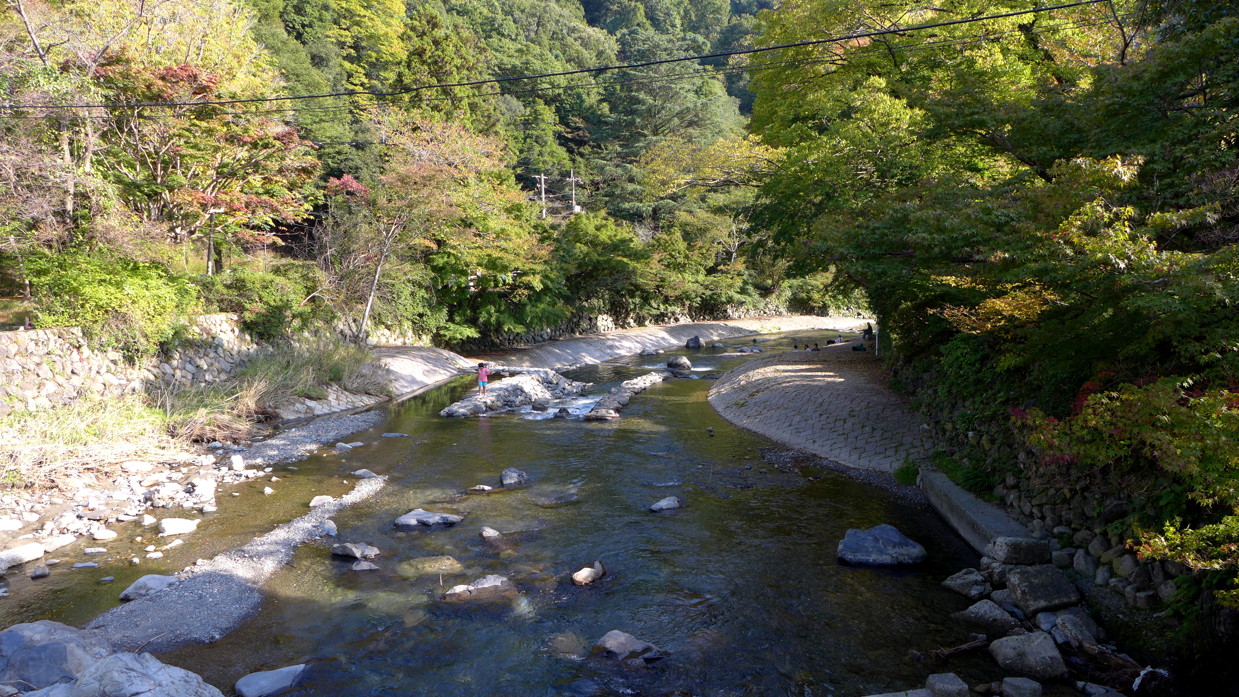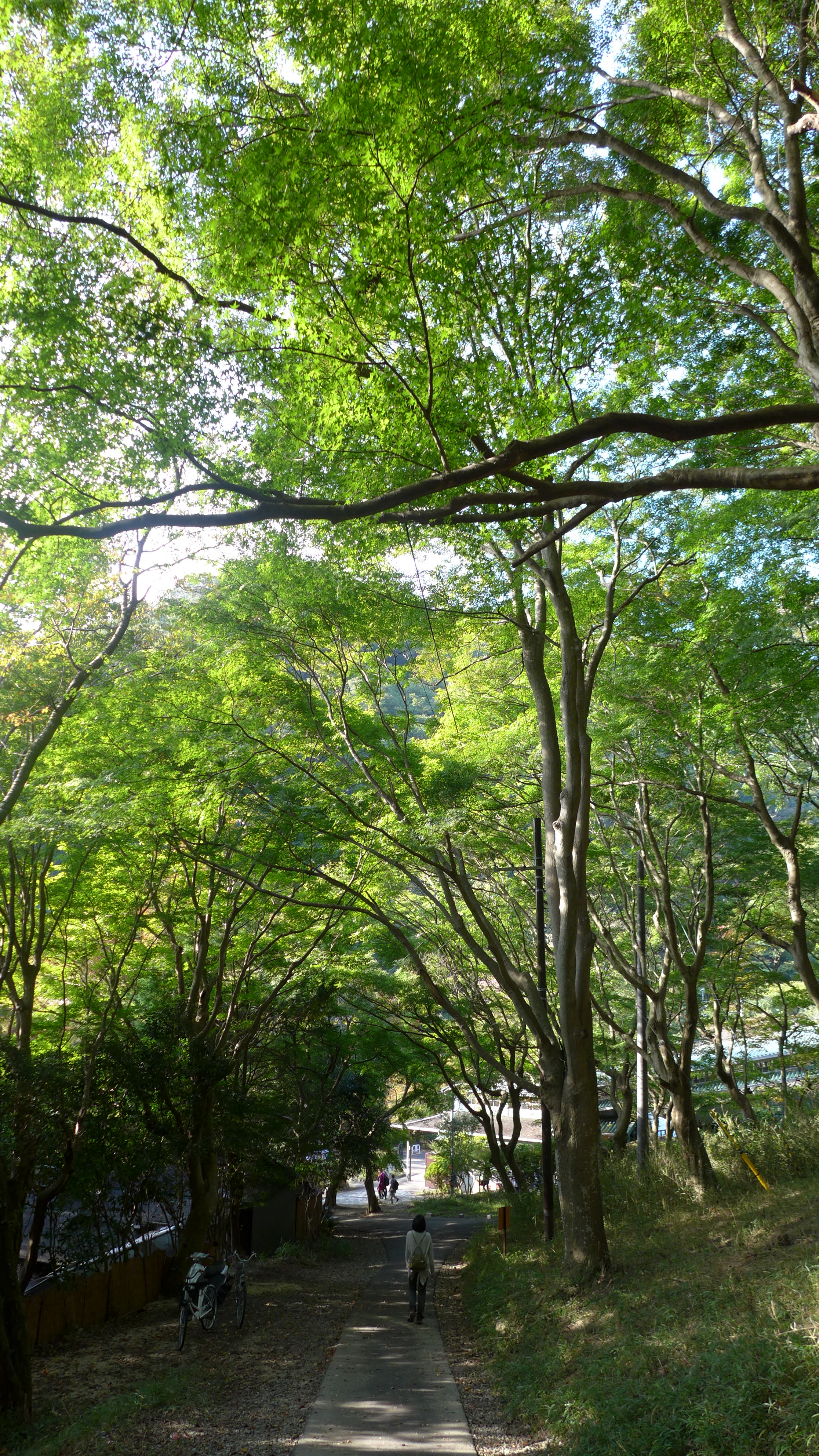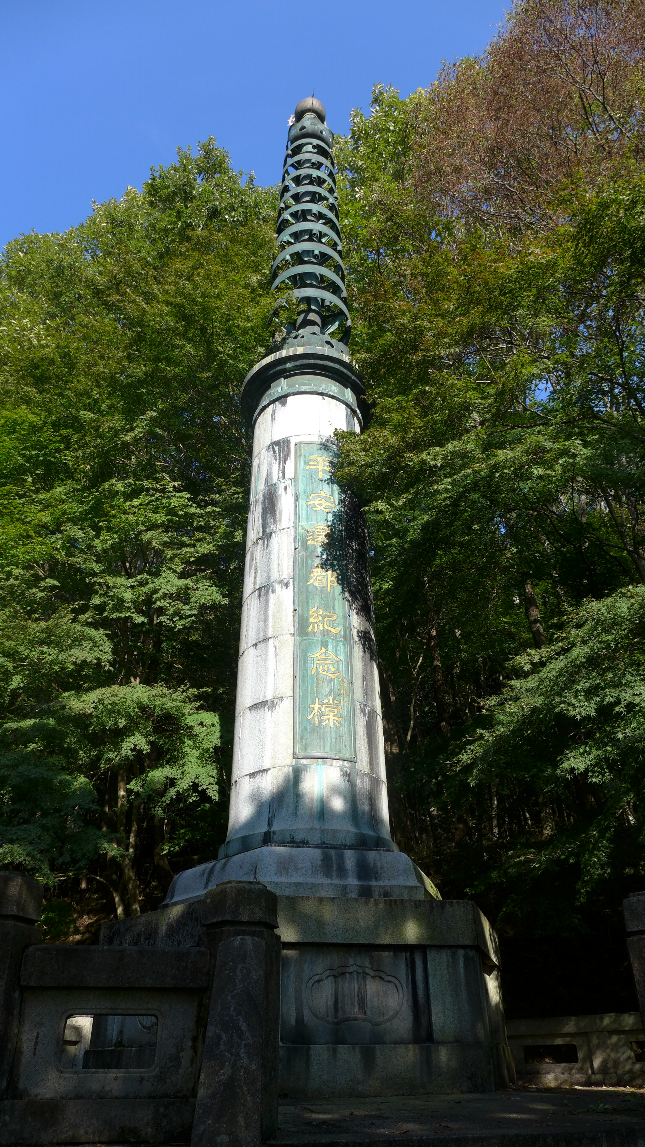 The train to Yasehieizanguchi station (八瀬比叡山口駅) only takes around 15 minutes and costs 240円 (£1.30). The train takes you out of Kyoto to a small town surrounded by mountains with the Takano river (高野川) running through it (the same river carries on through Kyoto). The cable car is very close to the station and runs on both weekdays and weekends – I think its more frequent on the weekends, running every 20 minutes or so. While we waited for the cable car dad and I had a look around the town, walking up to a monument that appears to be celebrating the founding of the ward that is occupied by Mt Hiei. In any case, it was a pleasant (very short) walk up to the monument and back. The walk was through a small forest of maple trees which will look spectacular in a few weeks when Autumn hits Kyoto.