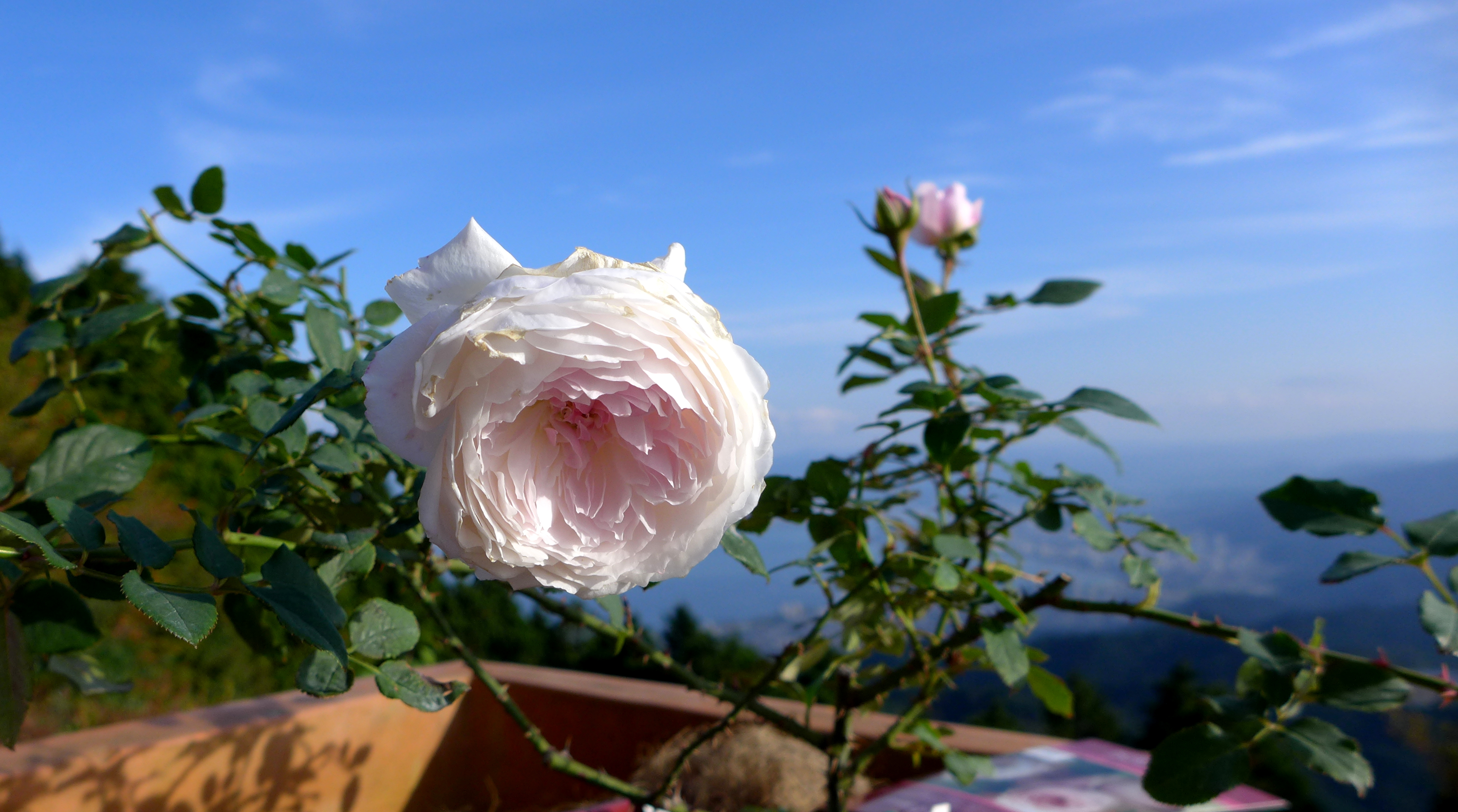 Very near to the top exit of the ‘Ropeway’ is the entrance to the ‘Garden Museum’ (ガーデンミュージアム比叡), a European-style garden designed to reflect the works and subjects of Cezanne, VanGogh, Renoir and other impressionist painters. At this time of year it was amazingly colourful and quite the contrast to the stark rock and tree oriented Japanese traditional gardens. They had also dotted around prints of the aforementioned artists’ works, probably to evoke a more ‘European’ atmosphere and remind us of the source material. As it is at the top of the mountain you can enjoy the flowers and the views at the same time. In a few weeks it will be even better with the Autumn colours – there was a bit of red but you can tell that in a few weeks the mountain will be cloaked in the robes of Kyoto’s Autumn.