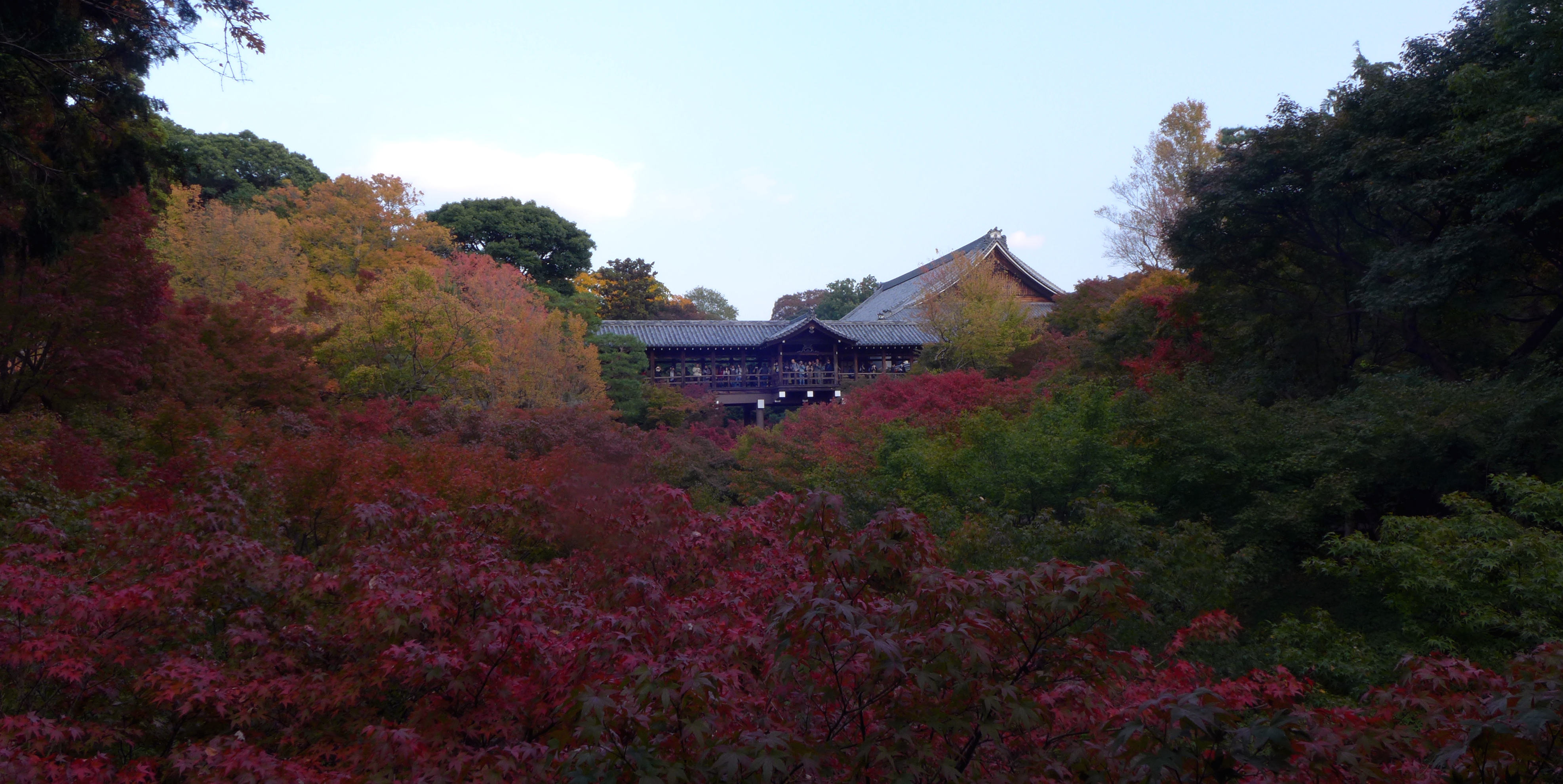 Yesterday was a beautiful Autumn day, so what better to do than visit another Temple? I got on the train from Demachiyanagi station and headed to Tofuku-ji, one of the temples renowned for its beautiful Autumn leaves. The leaves will be even better in a few weeks but if I saw all the temples’ leaves at their finest I’d be rushing between them all week. The time when leaves turn red in Japan is called Koyo (紅葉) and its one of the two best times to visit Kyoto (the other being cherry blossom season).