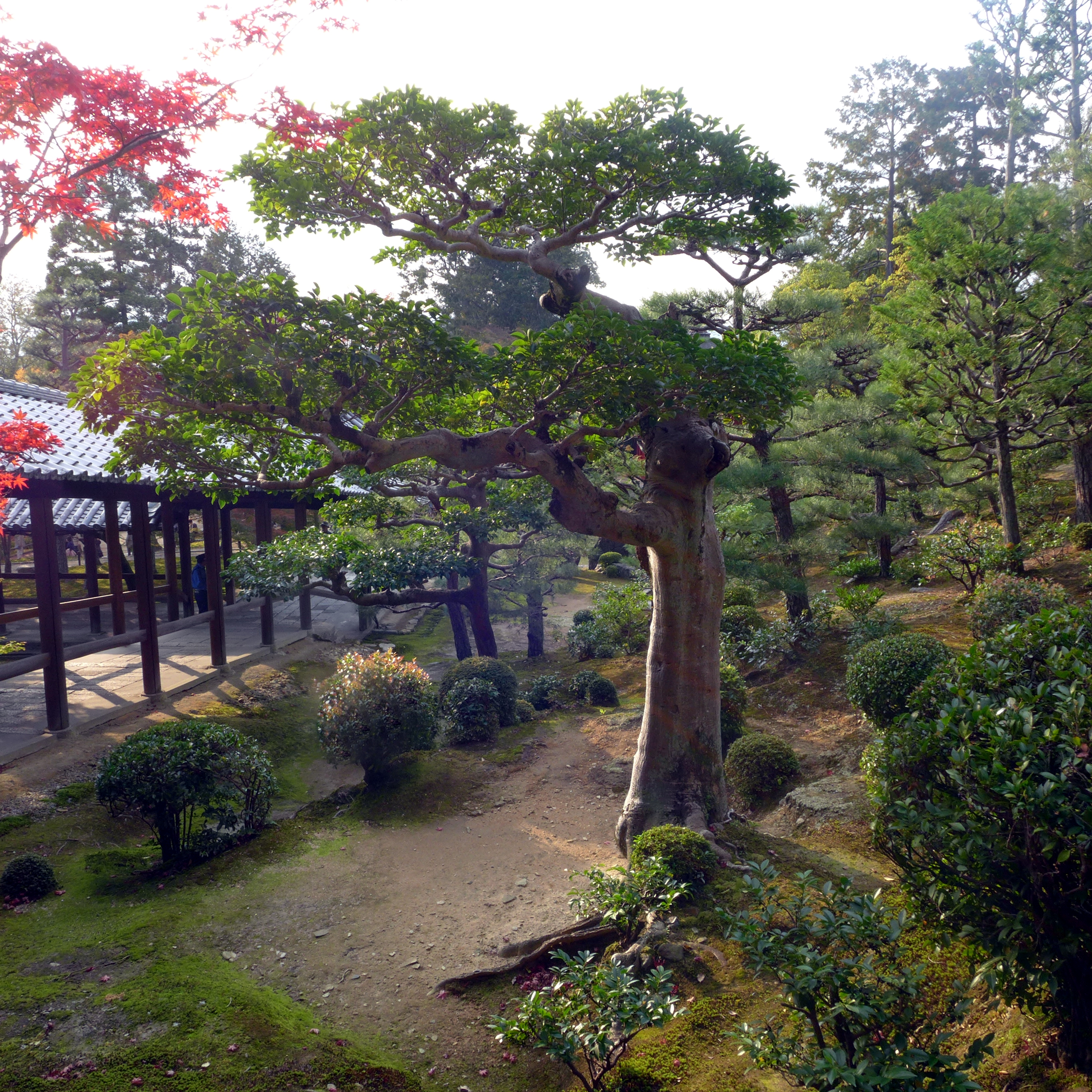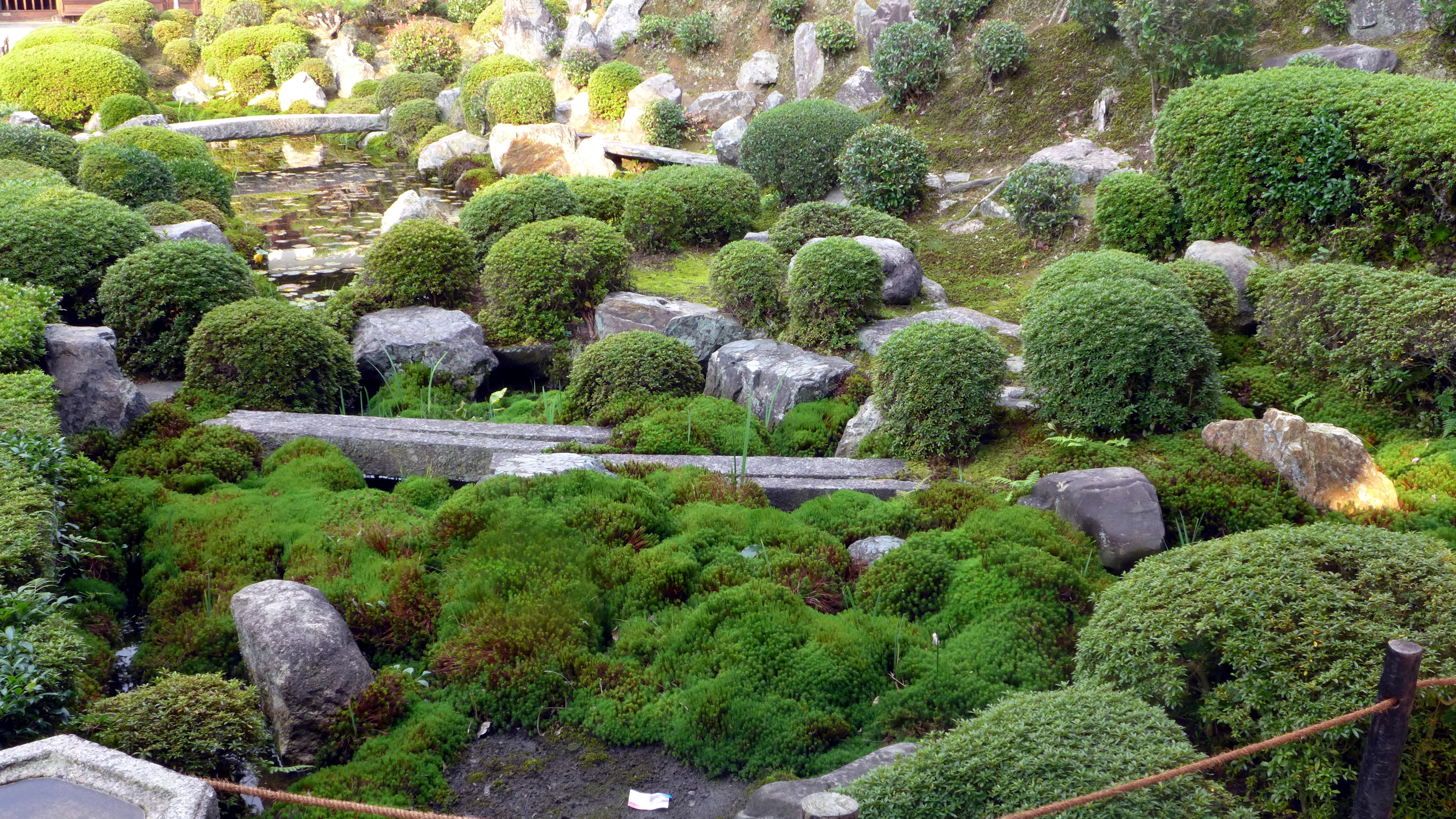 As well as the seasonal Autumn viewing, Tofuku-ji also has a zen garden and a moss garden. The moss garden was designed in the 1930s and is considered an example of the renaissance of Japanese garden techniques in the 20th Century. The designer, Shigemori, argued for a ‘hybrid’ approach – prior to his work people either remained stringently traditionalist or modernist, gravitating to these extremes. Shigemori preferred to build upon previous garden designers while innovating, progressing the art rather than clinging to an extreme.
