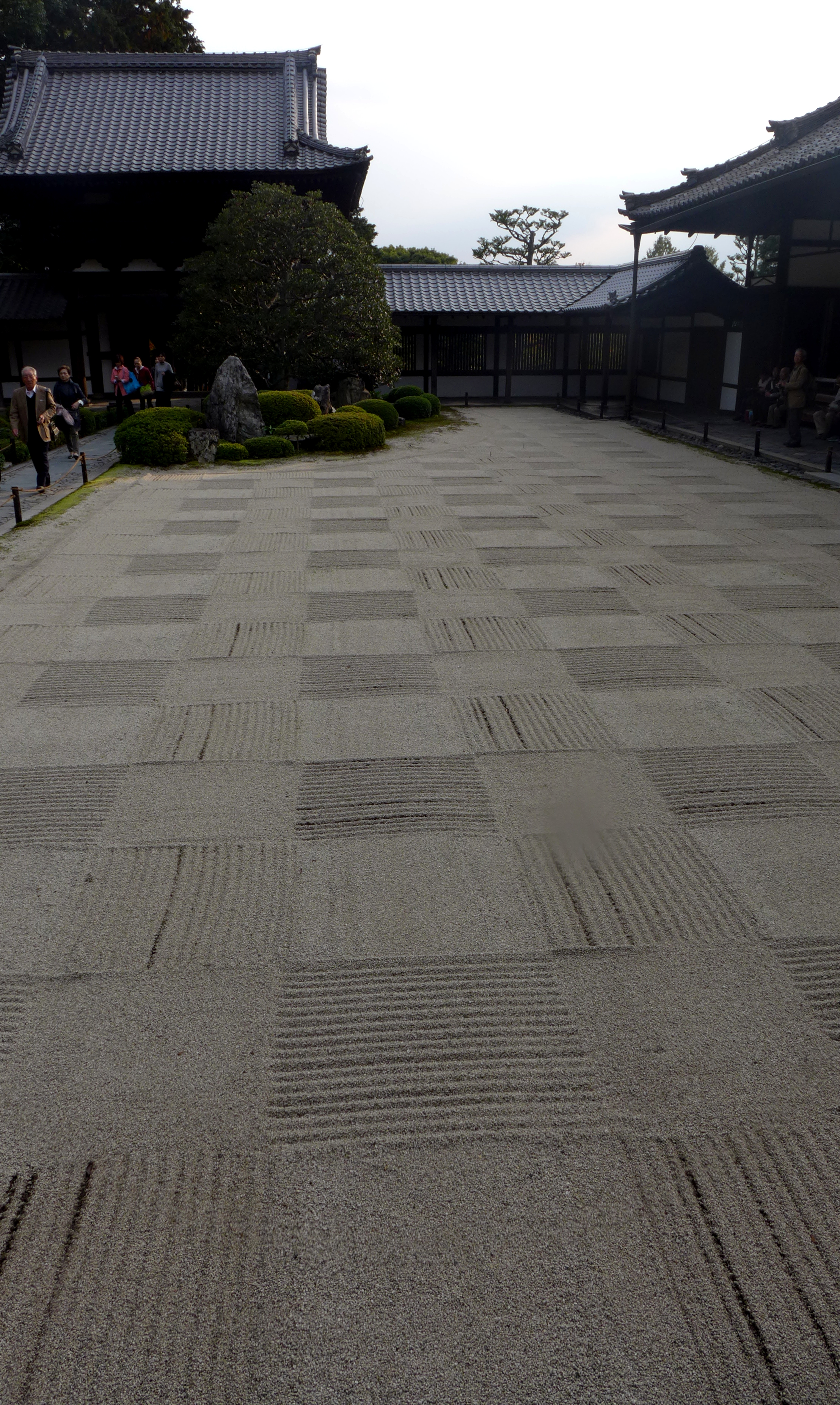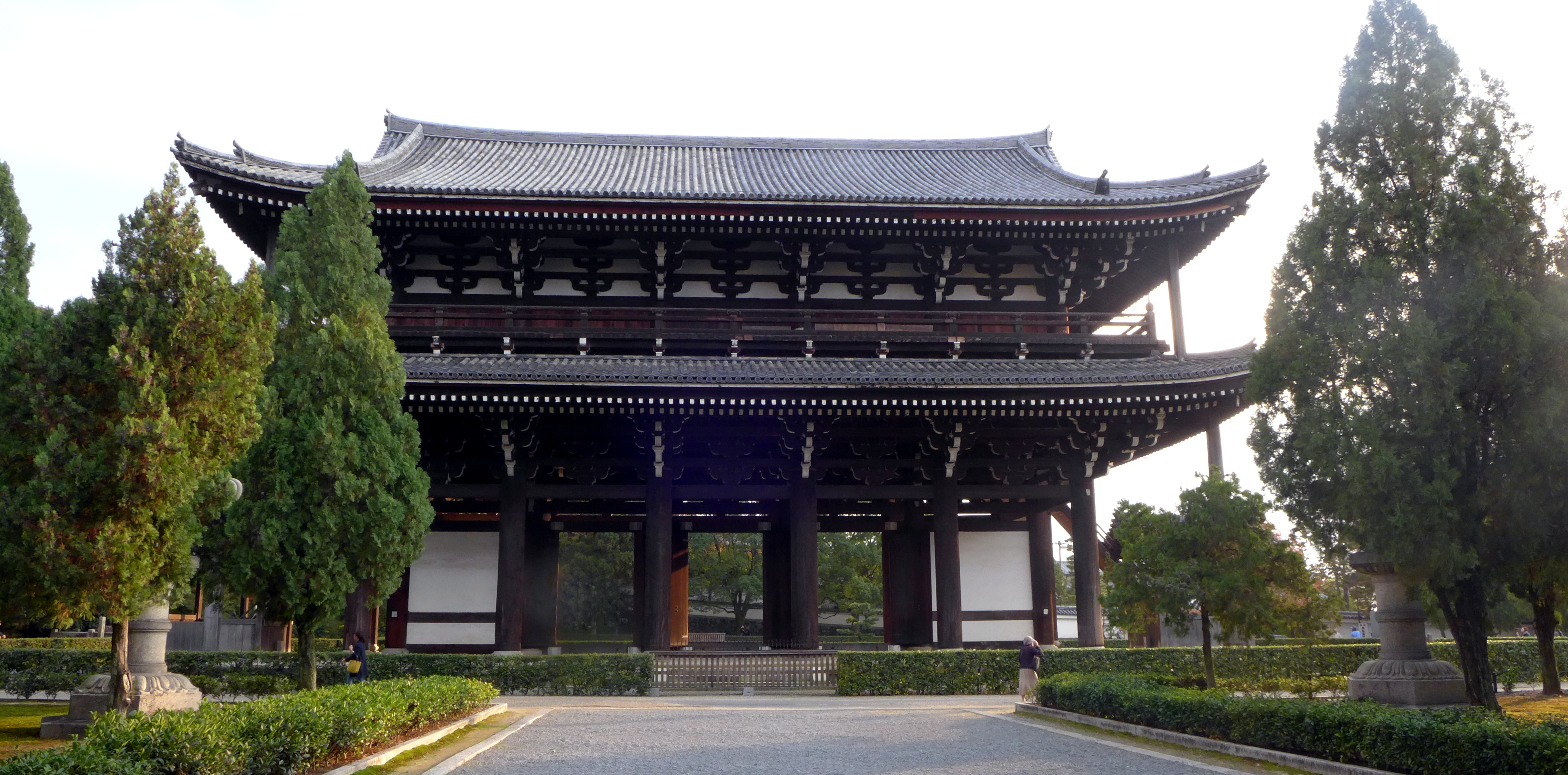 As is the norm for almost all temples in Kyoto, Tofku-ji is not the original building – it burned down. This is what happens when all your national monuments are built out of wood. It was reconstructed in the 15th century and as is custom it was rebuilt exactly to the plans, keeping it in the style intended when it was first built. In Japan you don’t get the interesting amalgamation of architecture that you sometimes get in European churches and castles, where burned or destroyed sections are brought ‘up-to-date’ according to the period. It shows a respect for the past that throughout the centuries Japanese monks and architects have preserved original architectural styles (while creating new ones by constructing new buildings instead of ‘improving’ old ones).