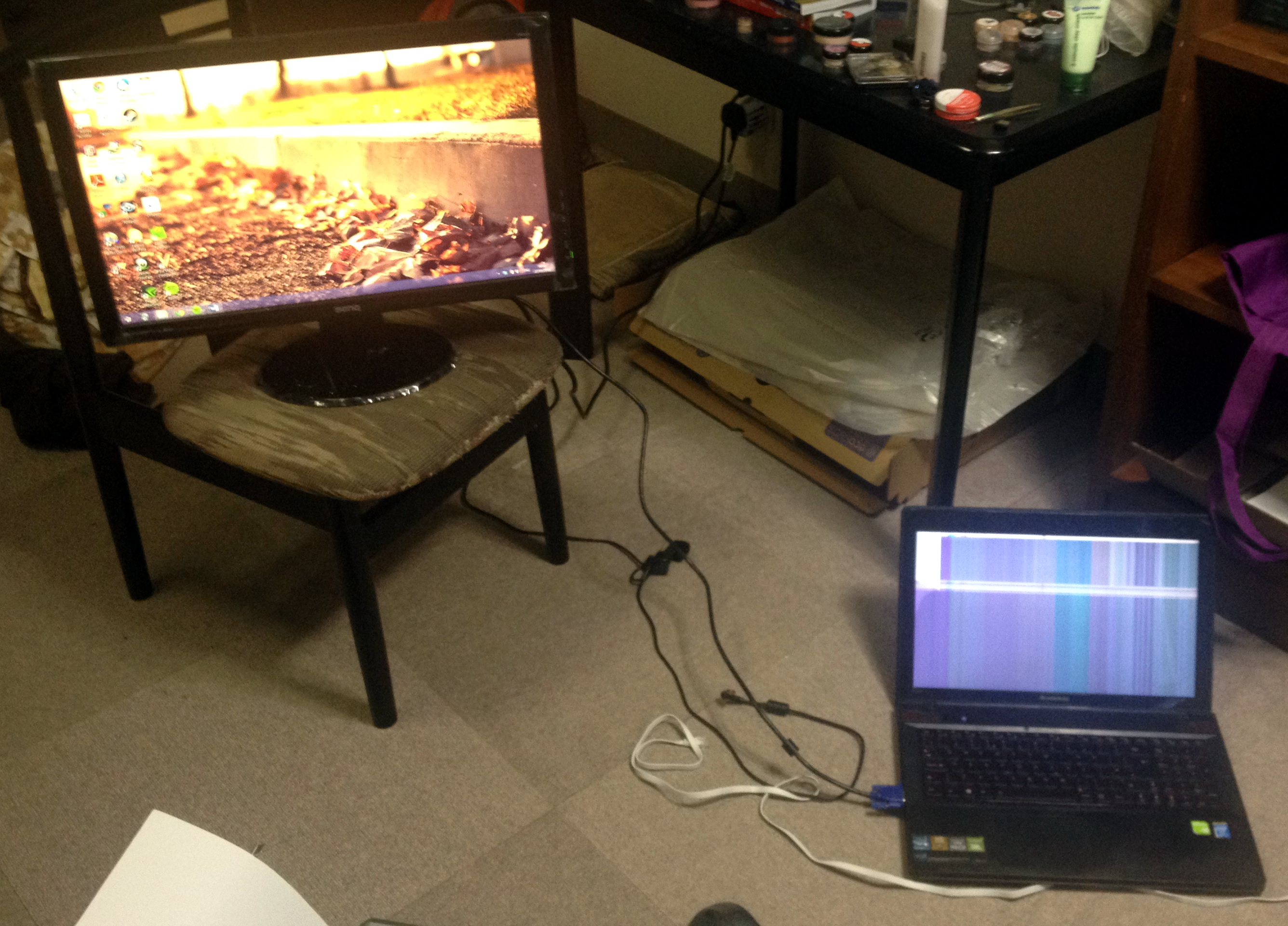 - Try to get a monitor and HDMI cable asap so I can still communicate with the world