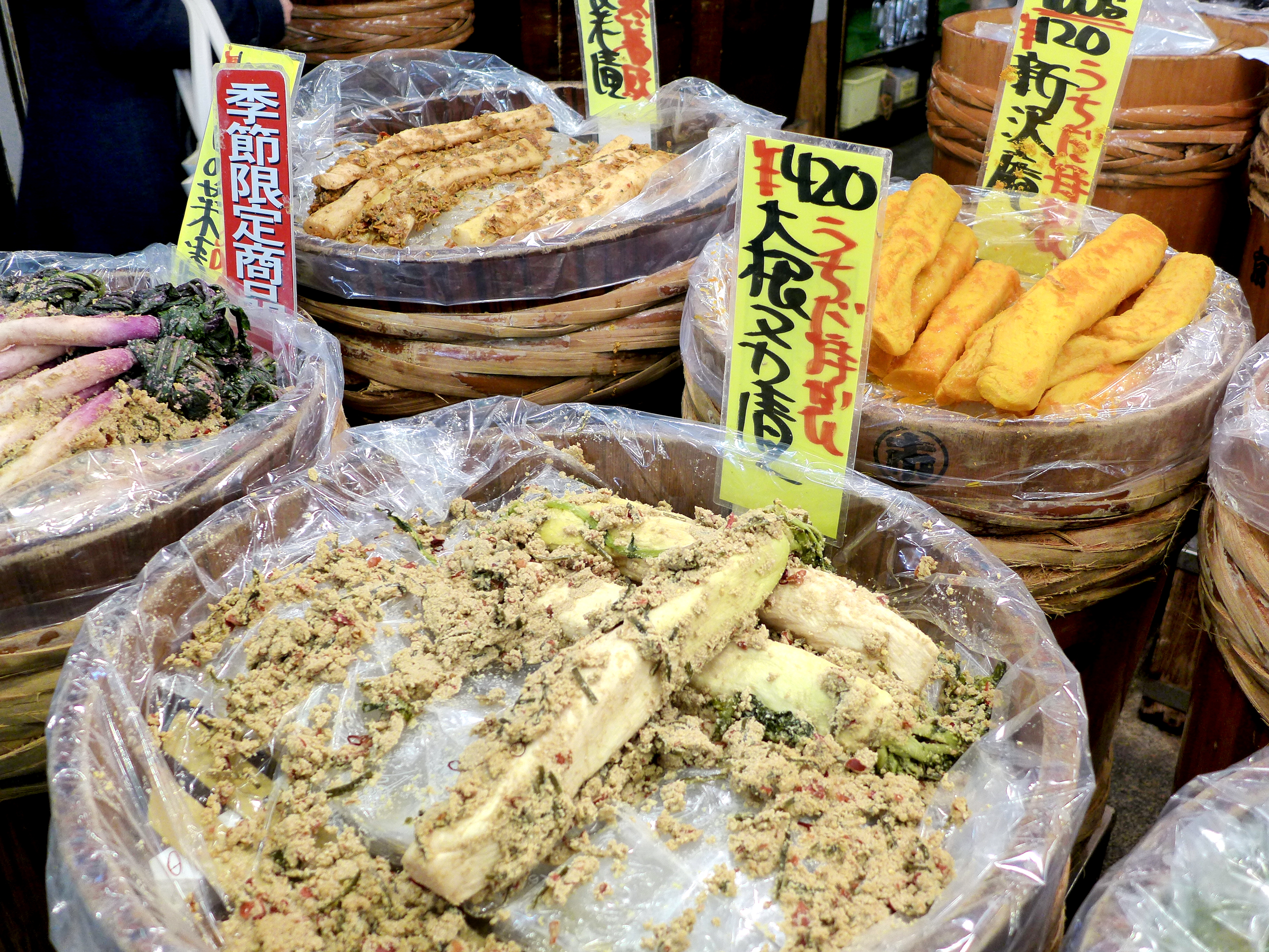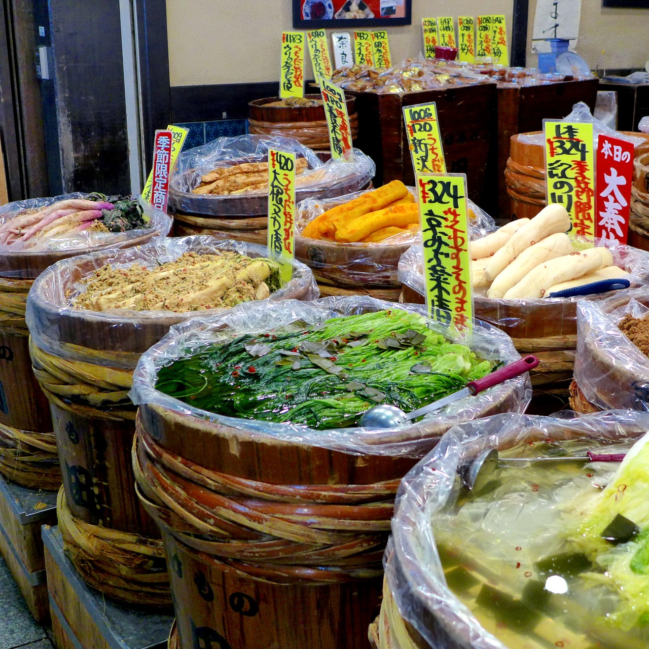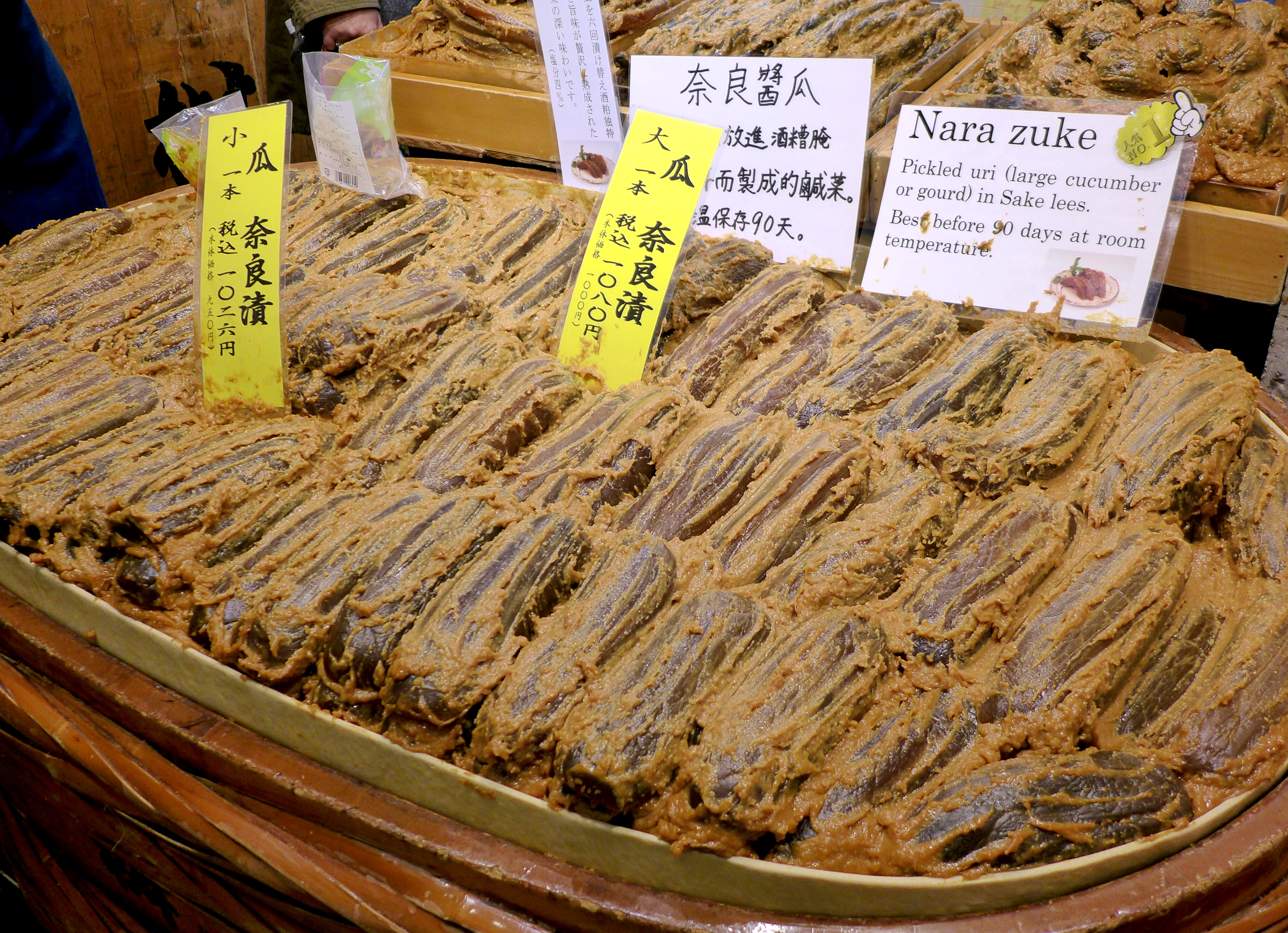Most product at Nishiki Market is grown or caught locally – the freshwater fish are caught at the nearby lake Biwa (琵琶湖) and the vegetables are grown in the Kansai region. There is a focus on ‘Kyoto Yasai’ (京都野菜) or ‘Kyoto Vegetables’ – vegetables that are prominent in Kyoto cooking and are specialities of farmers near Kyoto. These Kyoto Yasai include aubergine, spring onions and bamboo shoots. They also seem to like everything pickled or dried – you can get almost anything in pickled or dried form. For more information on Kyoto Yasai this is a pretty good article.