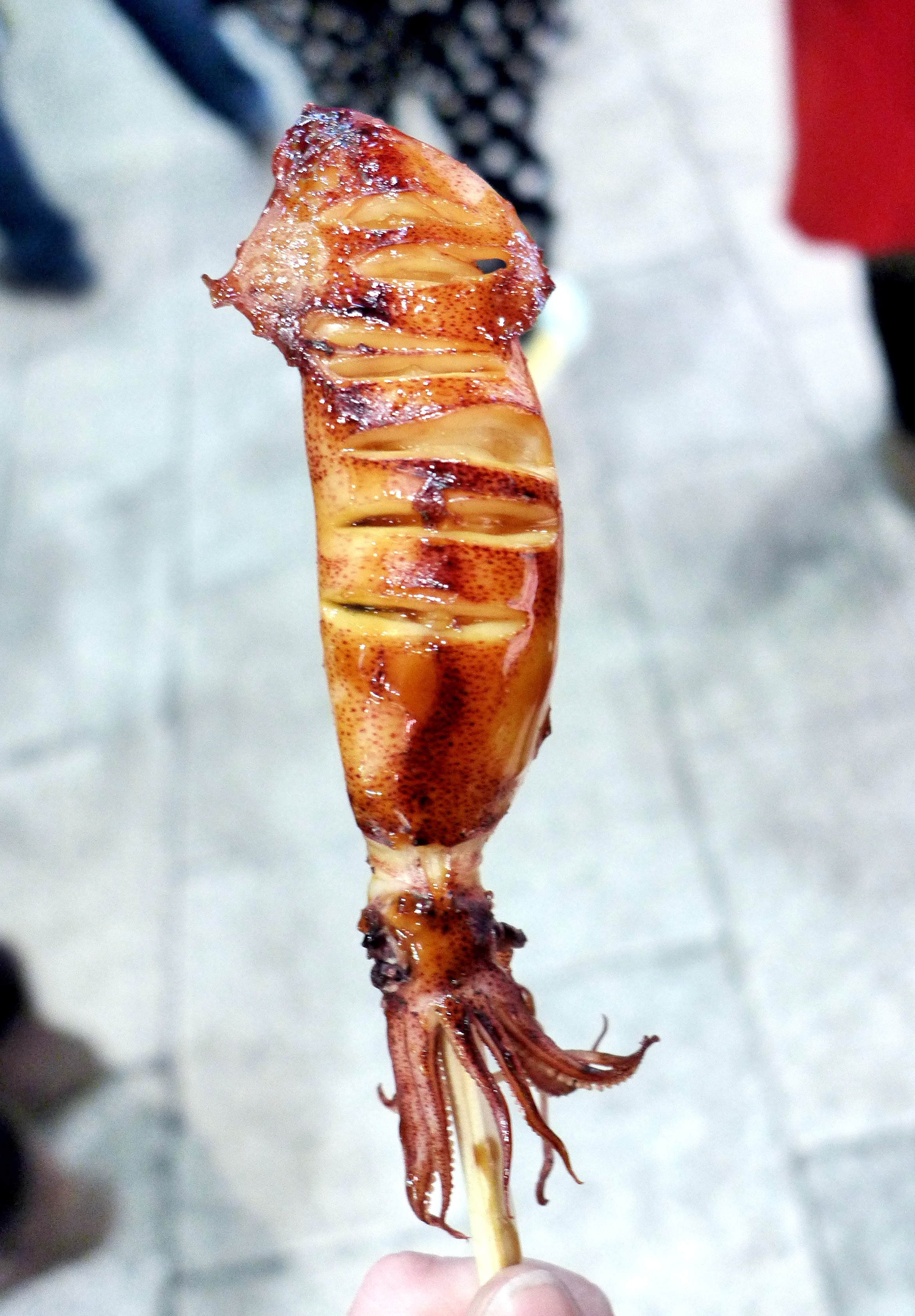I simply couldn’t go to a market full of amazing food and smells without eating something. To be honest most of the food I saw I didn’t recognise or couldn’t name, so I decided against buying something odd, and settled for a grilled squid on a stick for 180円 (95p). To some that might still be pretty alien, but I found it absolutely delicious. It was really tender and the sauce was slightly sweet. I probably could have eaten ten of them but I restrained myself.