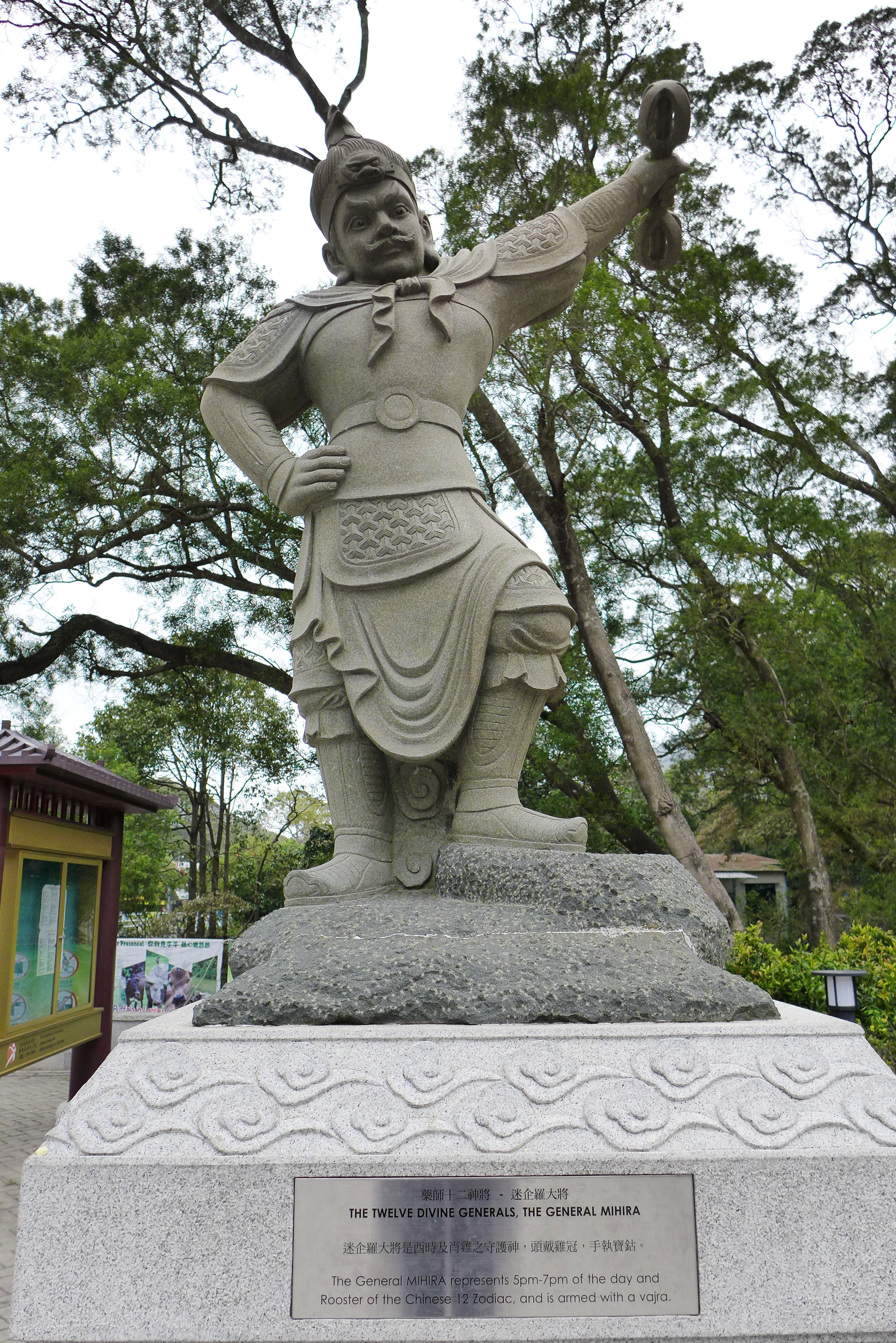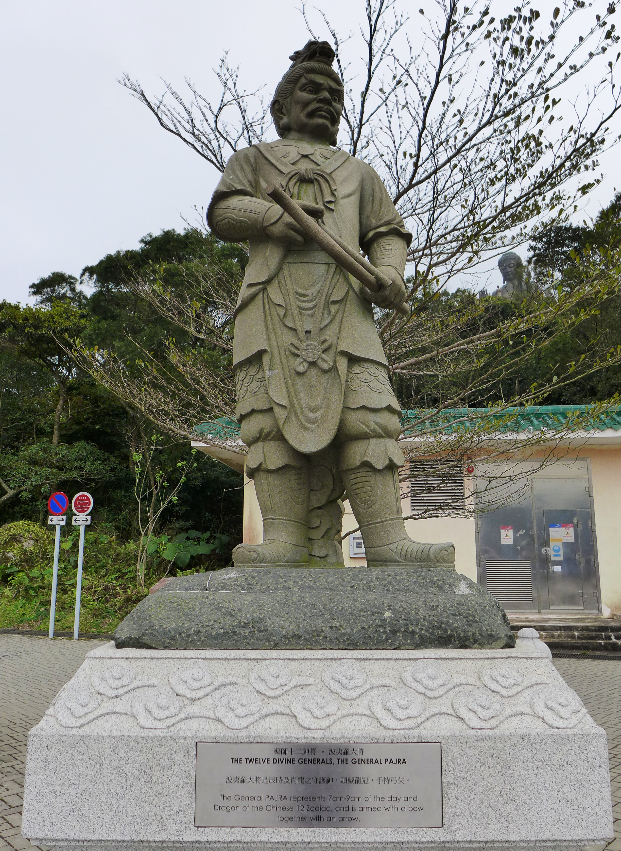 Arriving at the bus stop, we walked through the grand white gates towards the path up to the Buddha. Lining the way on either side were the 12 Heavenly Generals, said to defend the Buddha of healing. There is a general for each animal of the Chinese zodiac, which corresponds to a time of day and carries a different weapon. These are fictional generals, rather than great figures of history and also feature in Japanese Buddhism as lesser kami. I will not picture all twelve of them here as they all looked fairly similar but here are four for your viewing pleasure.