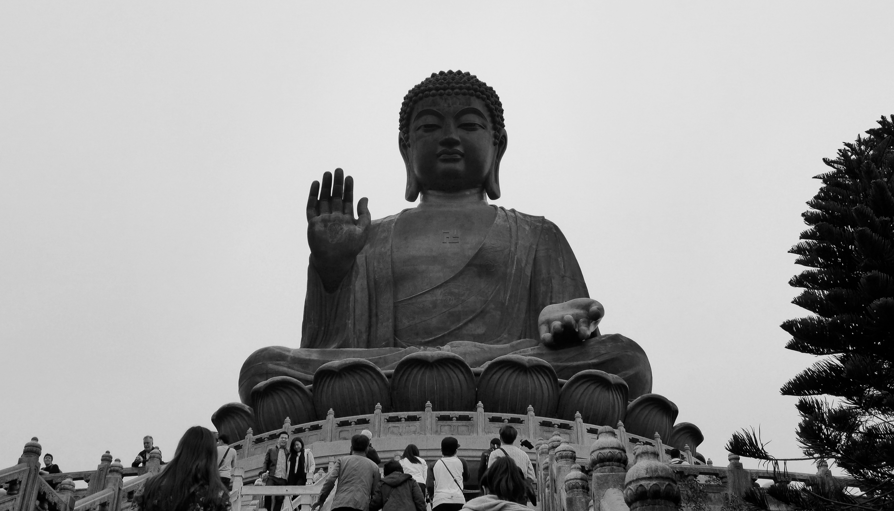 Tian Tan Buddha, 天坛大佛, is a little out of the way, on the island of Lantau, towards the South of Hong Kong. There is a cable car from Ngong Ping station but we chose to get the bus as it was pretty foggy and the bus was much cheaper. The bus ride was pretty enjoyable as we got to see a lot of the island. The bus struggled going up the hill and when we went downhill it felt like the driver was taking out his frustration at its crawling pace up the mountain by racing down the twisting mountain roads. This was a little scary but it certainly added to the experience.