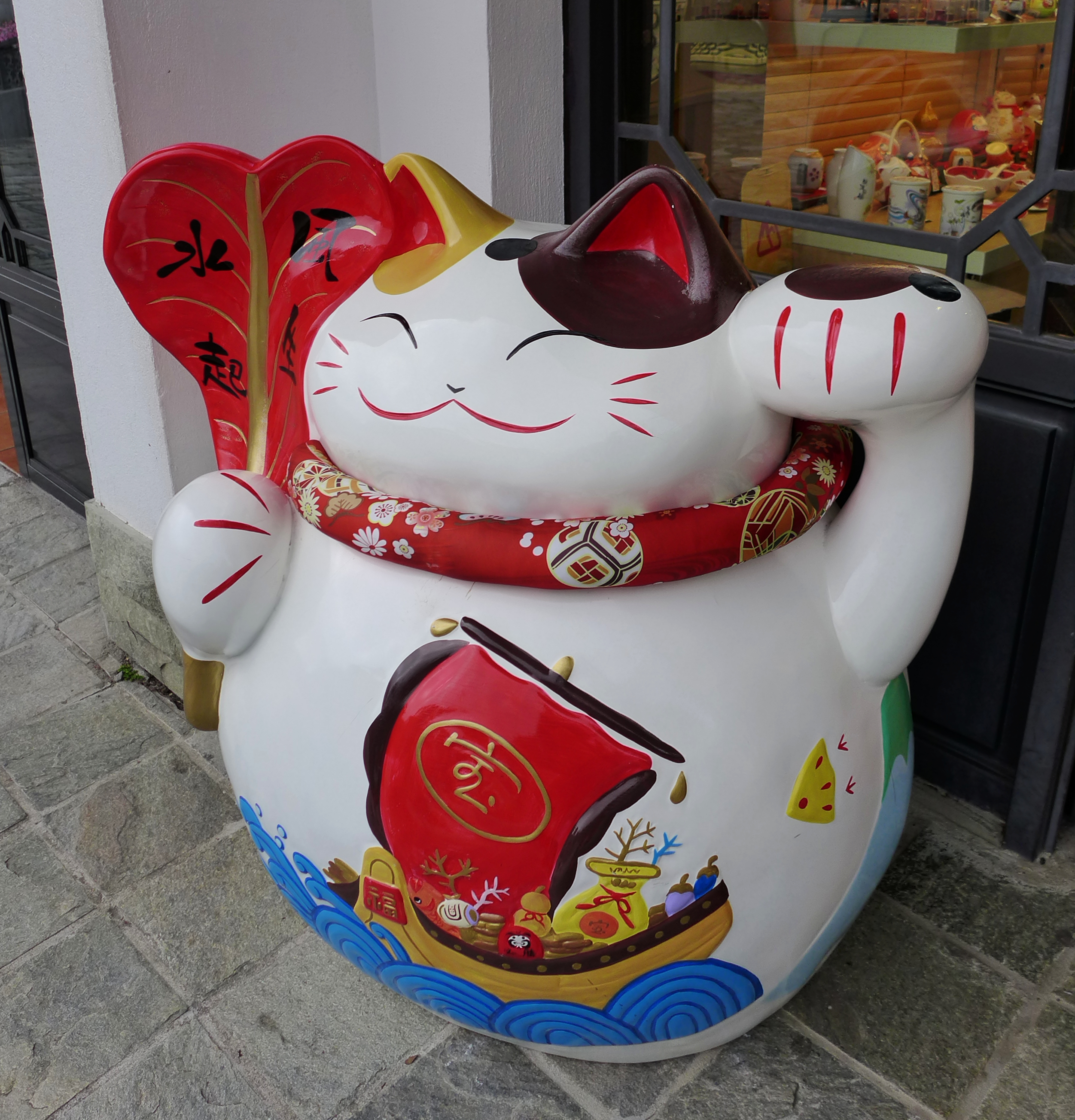 After we headed back from the monastery towards the Buddha we checked out the ‘village’ to the South that went down towards the cable car terminus. I say ‘village’ because it was a collection of shops and restaurants, I doubt anyone really lives there. They had a display of cable cars from all over the world lining the street as well as several cartoony sheep statues for the Chinese New Year. The fantastic masks you see pictured below were outside a shop dedicated to Peking Opera. I bought some flowering tea at one of the shops, which is the tea that blooms into a beautiful flower when you add hot water. I haven’t tried it yet but the example looked fantastic.