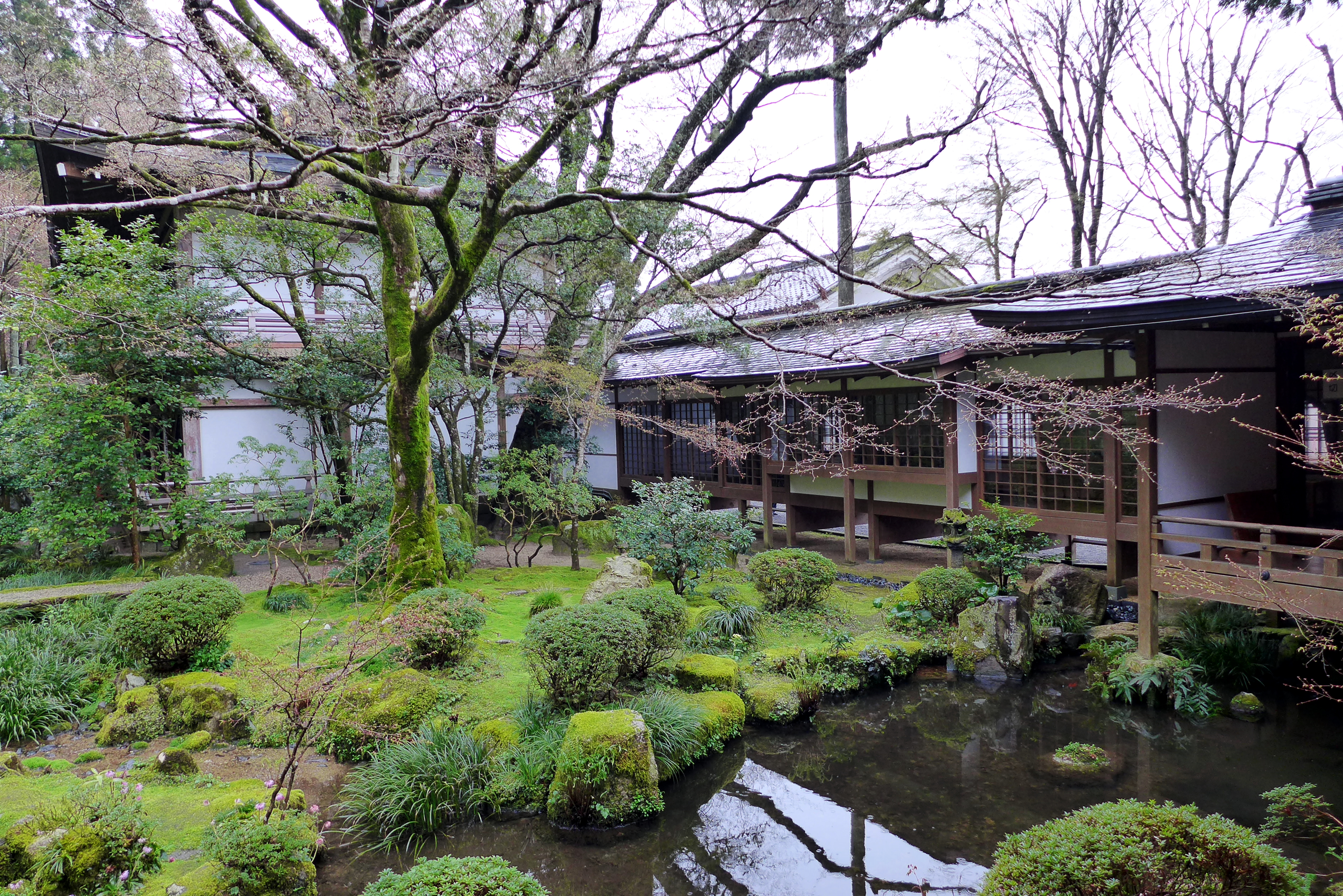The second temple I want to talk about is the third that we visited. Hosen’in 宝泉院, was founded in 1012 and is home to a number of interesting features. Entering the temple you notice the large pine opposite the gate which is shaped a bit like Mt Fuji. This tree is over 600 years old. In addition there is another 300 year old tree in the temple gardens.