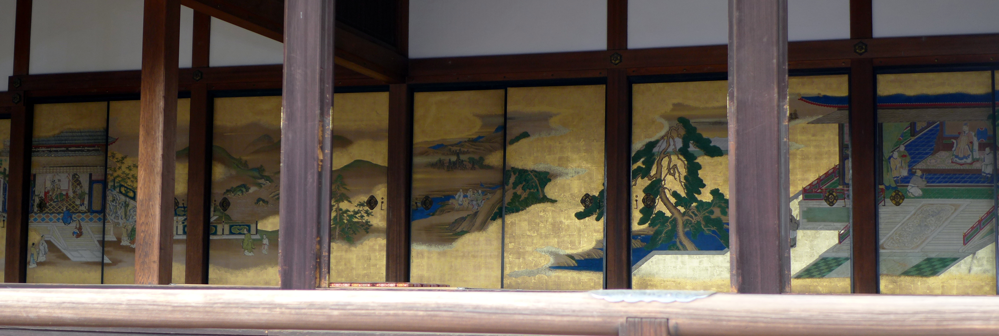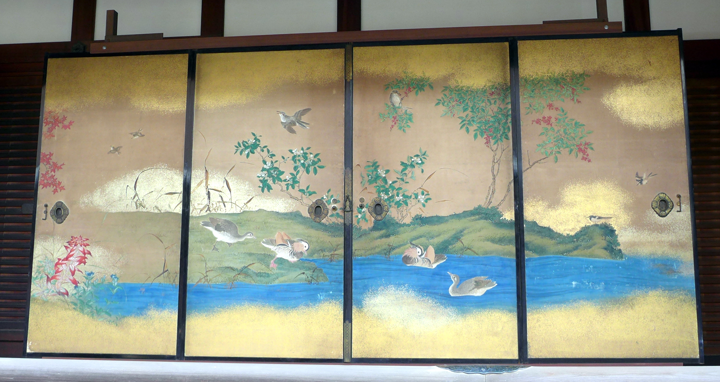 This temple allows you to take photos of the garden but does not allow photos of the inside or artwork. I only realised this after I’d taken some pictures and I’m sure they won’t mind too much if I share them with you – after all you may choose to visit after seeing them! Manshu-in has screen paintings done by several very famous Edo period artists, such as Kano Tanyu, Kano Eitoku and Kanyu, each with their own distinct style. The screens were beautiful and definitely worth going to see. There were also several Buddhist artefacts as well as a collection of old cooking equipment. There were a few signs in Japanese explaining the exhibition but not very much and nothing in English. Bear in mind that there were far more screens and objects than those pictured here as due to aforementioned photo-ban I didn’t take pictures of most of them. In fact the writing in photo number two to the right of the screen reads ‘photography prohibited’ in Japanese… whoops!