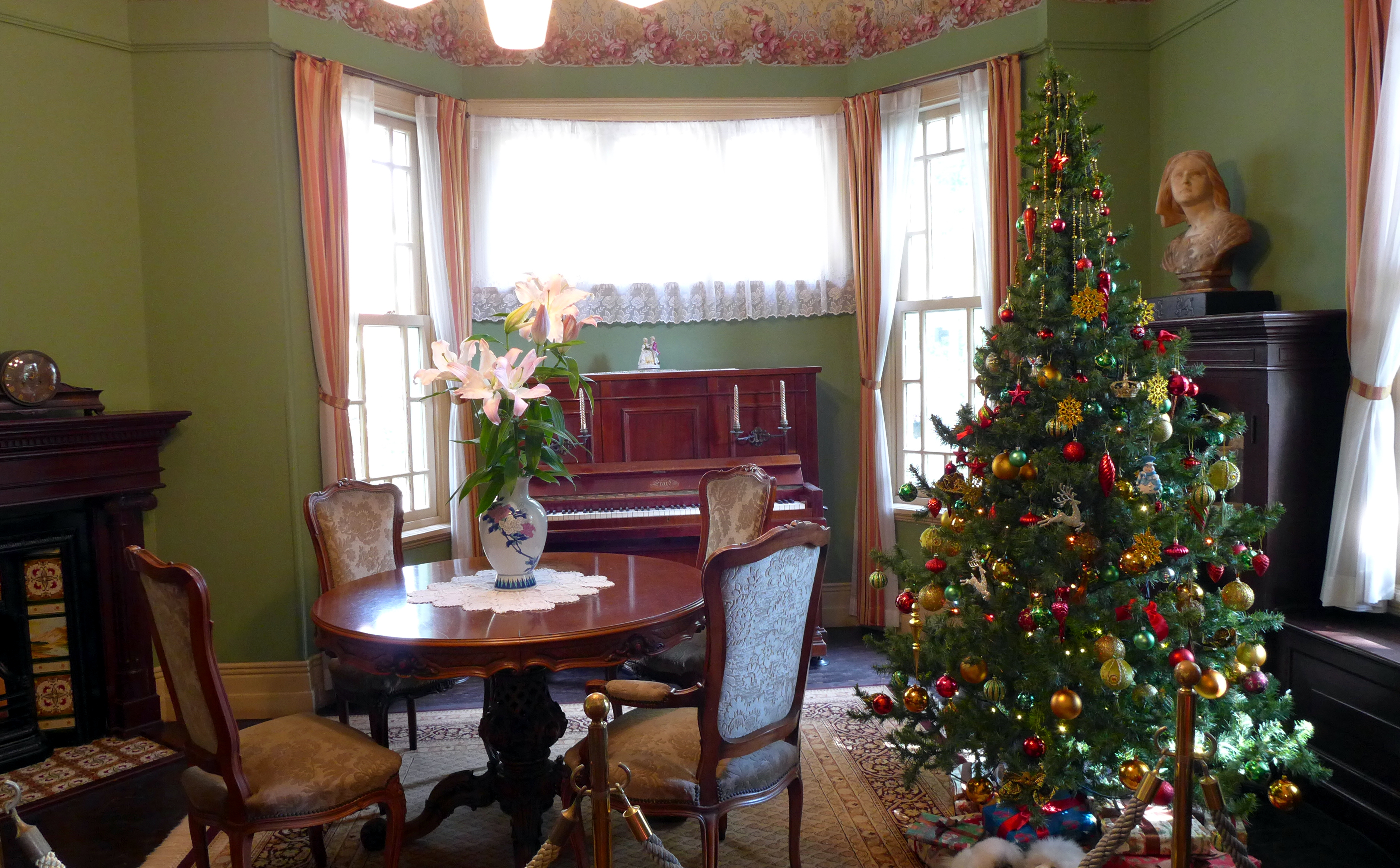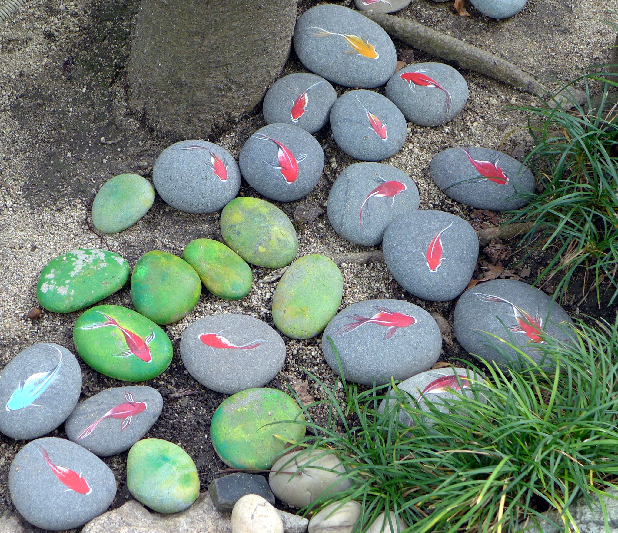We came to a beautiful area with trees and flowers all around, and several very non-Japanese houses surrounding a central courtyard. You can visit two of the houses, and we decided to visit one before lunch. The one we visited was called the Moegi House (萌黄の館 – literally: Light Green House), built in 1903 for Mr. Hunter Sharp, a former US Consul General. The house was fairly typical European style, so not particularly exciting for Westerners, but I enjoyed looking around it anyway. The garden had some stones painted to look like a fish pond, which I think is a really lovely idea.