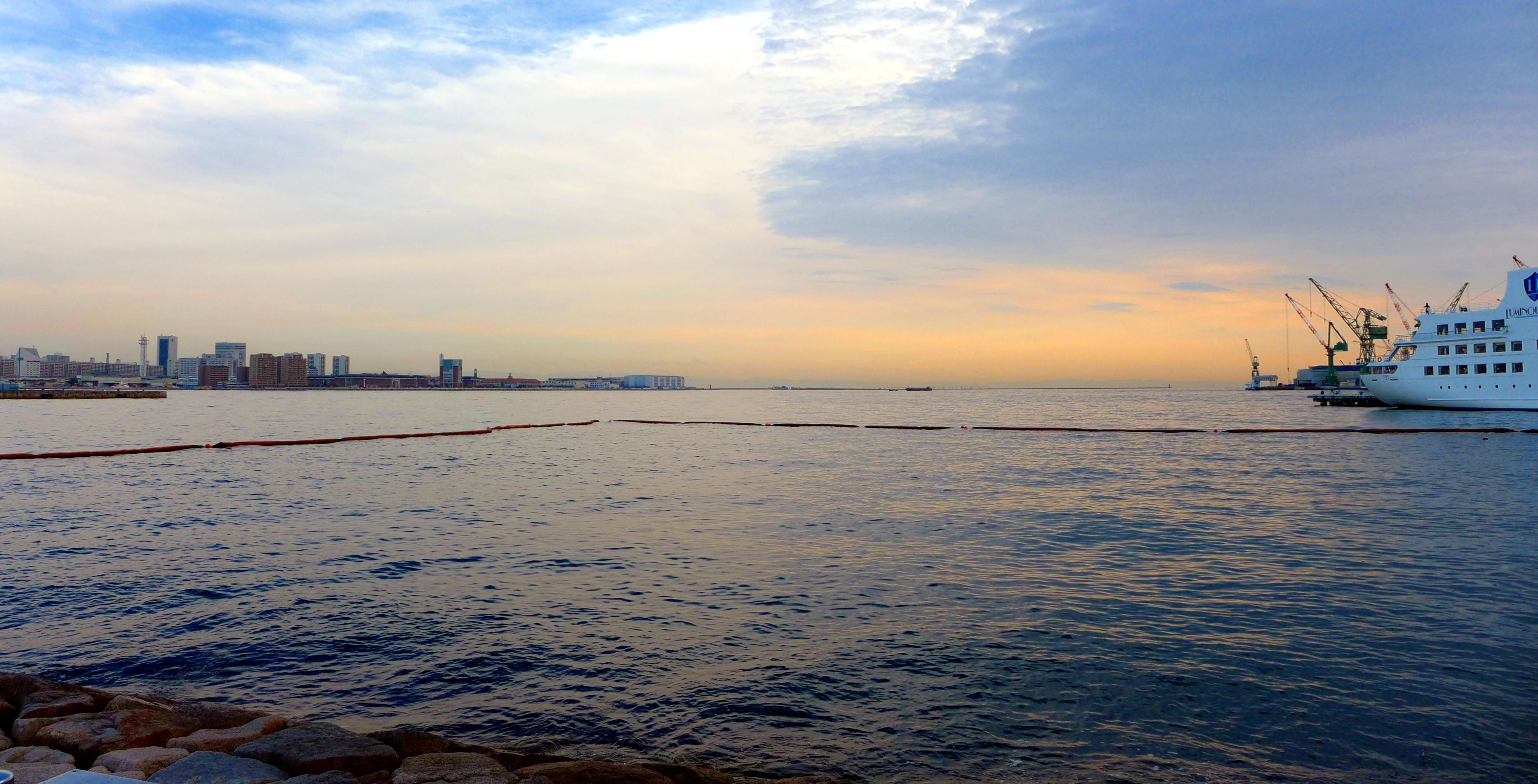 We eventually reached the ocean, and looked out across Osaka bay towards the other shore (which was presumably Osaka). It was lovely to see the sea; though the Kamo river is beautiful, there’s something magnetic about a wide stretch of ocean.