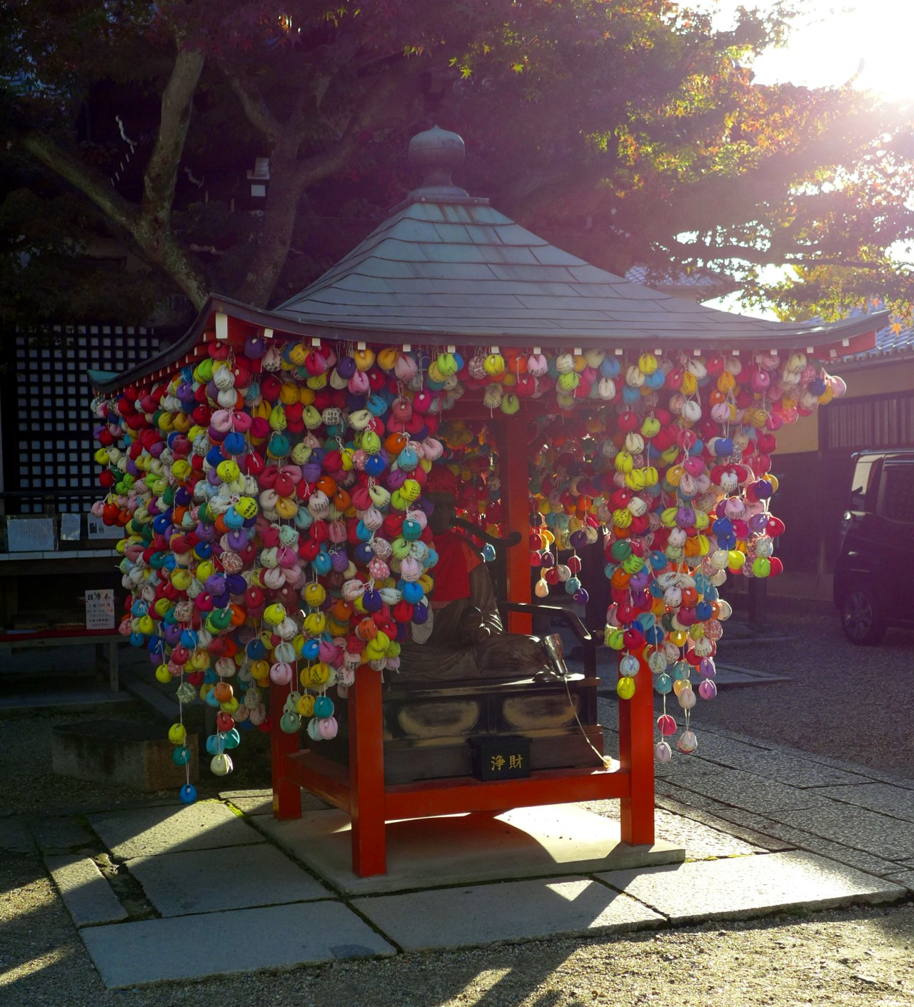 This is yet another interesting building I found when I was wandering around Heian Jingu. This is a temple belonging to the Nichiren sect of Buddhism, founded in the 15th Century. It has been rebuilt several times – monks from Enryaku-ji burned down Myoden-ji in 1536 as part of Tenbun Hokke no Ran which was basically a war between the three main sects of Buddhism in Kyoto. The Tendai monks burned down temples like Myoden-ji for their affiliation to Nichiren Buddhism (Nichiren Buddhism was in competition with Tendai for taxing the people and owning land). In the process they also burned down over half of Northern Kyoto and a lot of Southern Kyoto too. So much for the peaceful teachings of Buddhism…