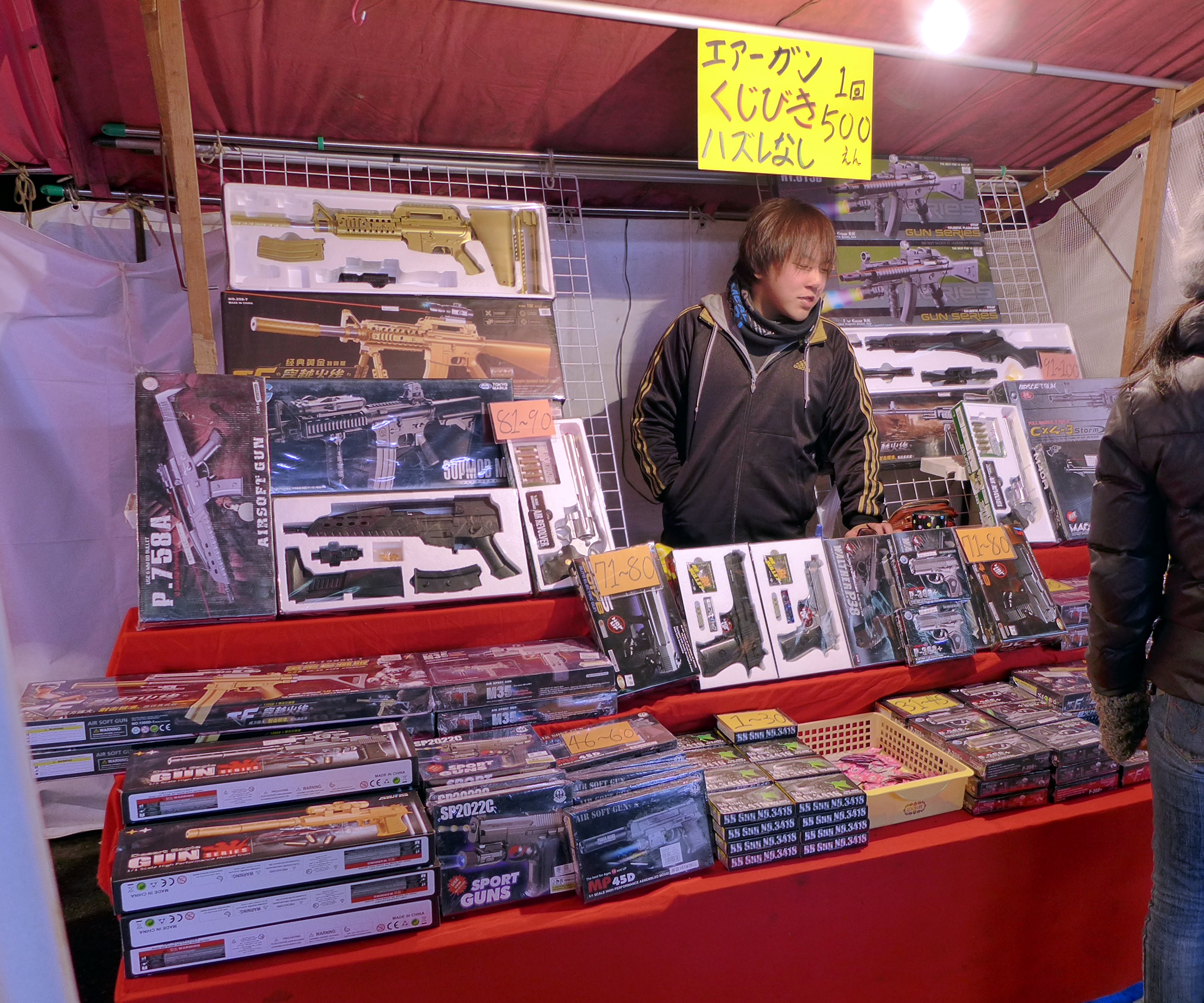 Japan’s traditional shinto new year leaks into many aspects of life during January, one such quirk is the appearance of fukubukuro 福袋 or ‘lucky bags‘ in shops everywhere. This extends the tradition of getting your lottery at New Year in a commercial sense; you pay a fixed amount (anywhere from 500円 to 100,000円+, £2.70 to £550+) and you get a bag with unknown items inside. These items will usually be double the value of what you paid for the bag, so they are a pretty good deal. The bags are a good way of shops to get customers to try their products as well as get rid of merchandise from the previous year. There is a Japanese superstition that you must get rid of old things from the previous year and start afresh (such as burning old amulets and purchasing new ones), and this appears to extend to stock in shops.