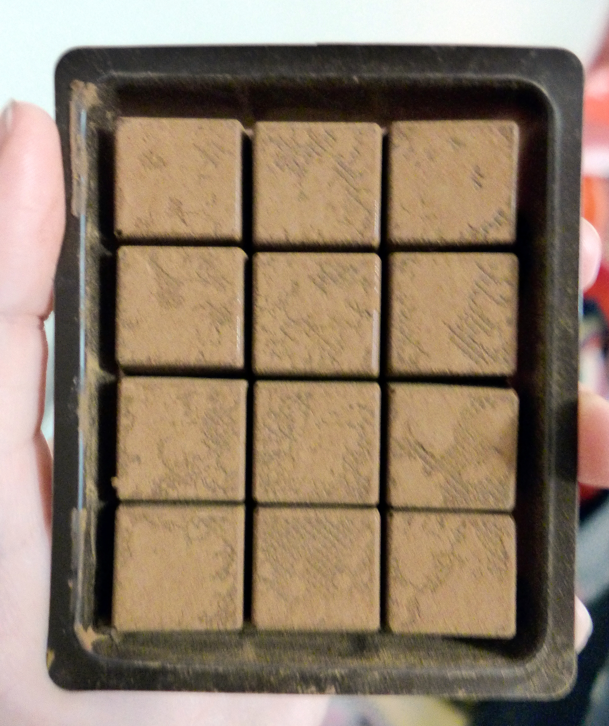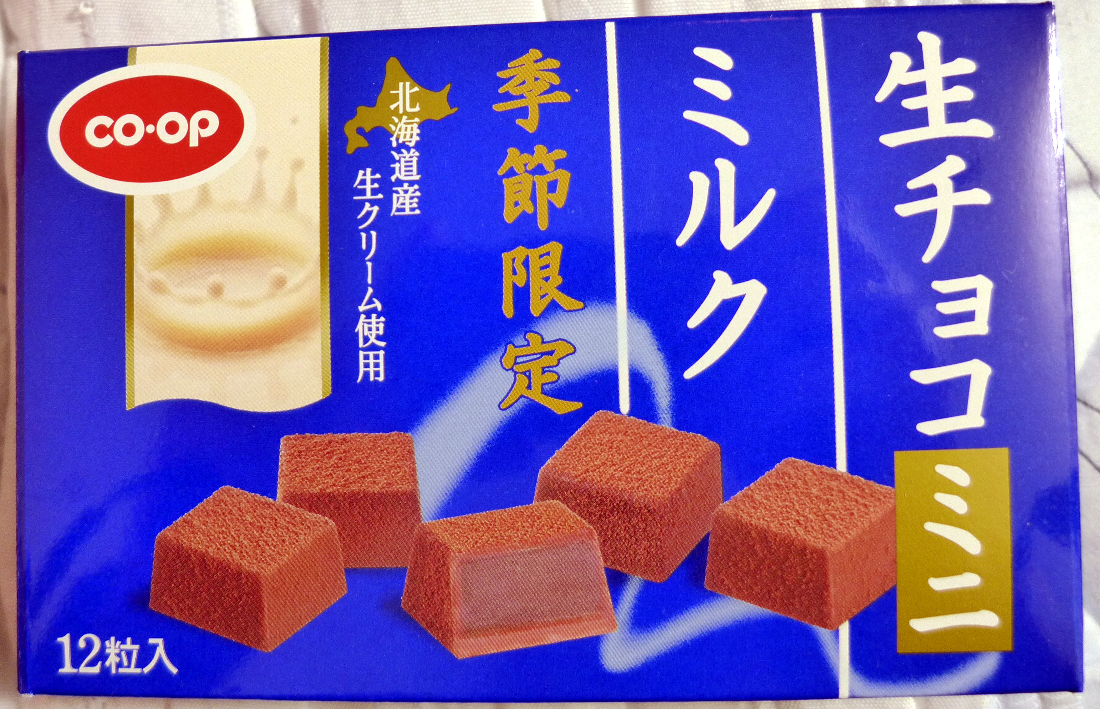 Milk ‘raw’ Chocolate: In Japanese it says 生チョコレート, which literally means raw chocolate. The chocolate was coated in bitter cocoa but was creamy and melty on the inside. I didn’t particluarly like the cocoa part and it gets all over your fingers. the packet does come with a small fork for stabbing the chocolate but even then it seems a bit silly. The chocolate tasted nice and creamy though. ★★★★☆