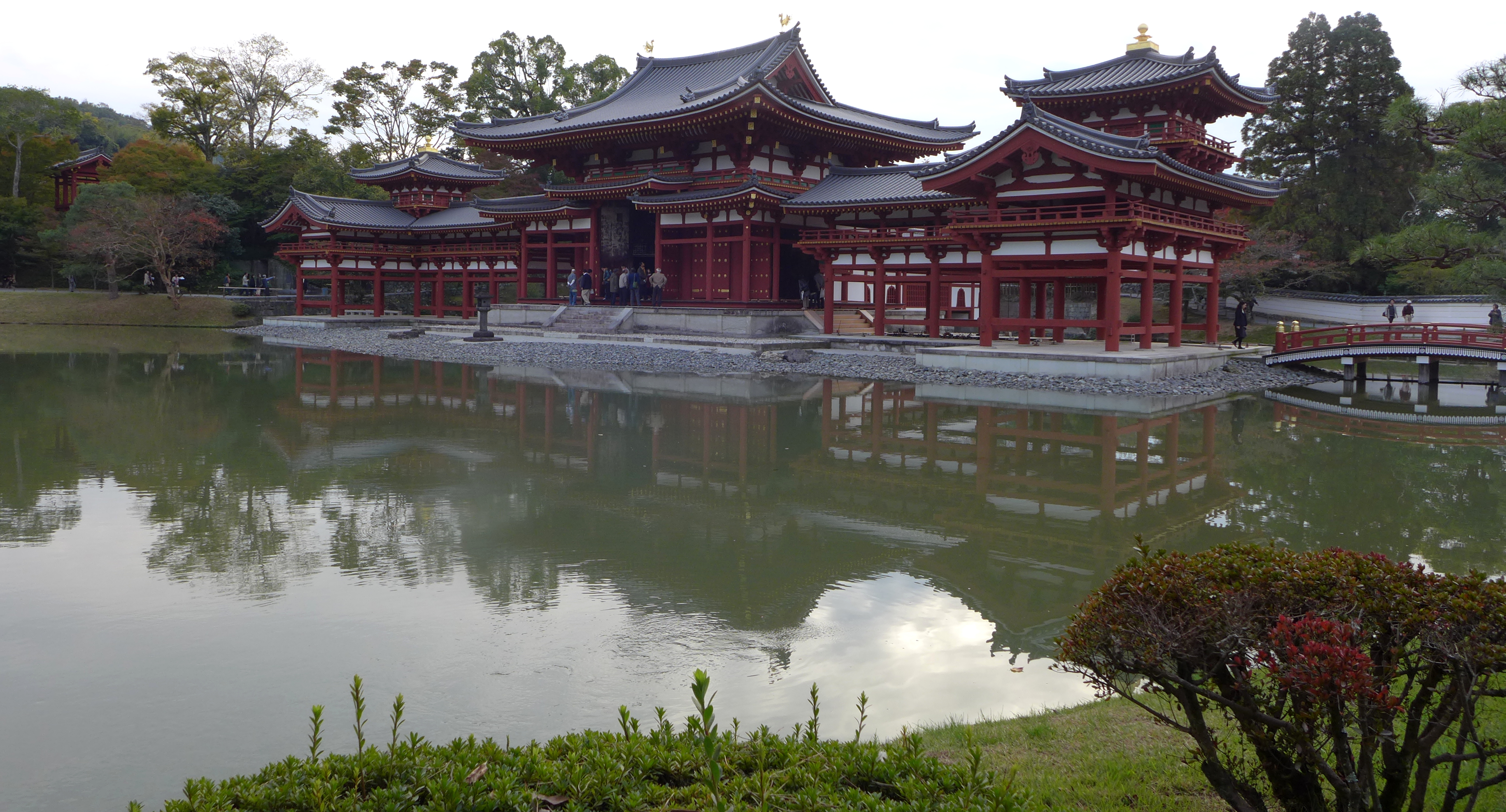 Byodo-in (平等院), the characters literally meaning ‘equality’ 平等 and ‘temple’ 院, is home to the famous Phoenix hall which was constructed in 1053 by the politically powerful Fujiwara family. Prior to this the site was a manor house dating back to 998 but the rest of the buildings that made up the original compound were burned down in a civil war in 1336. If you’re curious, the civil war was due to the Kenmu Restoration in which the Emperor attempted to restore power to the Imperial line after centuries of military rule under the Kamakura Shogunate (1185 – 1333). Emperor Go-Daigo’s attempt at independent rule failed as he did not reward the samurai that supported him and he failed to address the urgent need for land reform (the major land owners were tax exempt and politically independent, creating financial crisis for the government). As a result there was a civil war in which Kyoto itself fell to rebel samurai. A new Shogun by the name of Ashikaga Takauji took power and Go-Daigo abdicated (and most of Byodo-in burned down), marking the start of the Muromachi period in Japanese history (1336 – 1573). This shows that the military control of government in Japan was not an unchallenged fact. The previous shogunate lost power to a promising new leader while the Emperor, despite his attempts at true imperial rule, had no real power beyond acting as a legitimisation system for the shoguns.