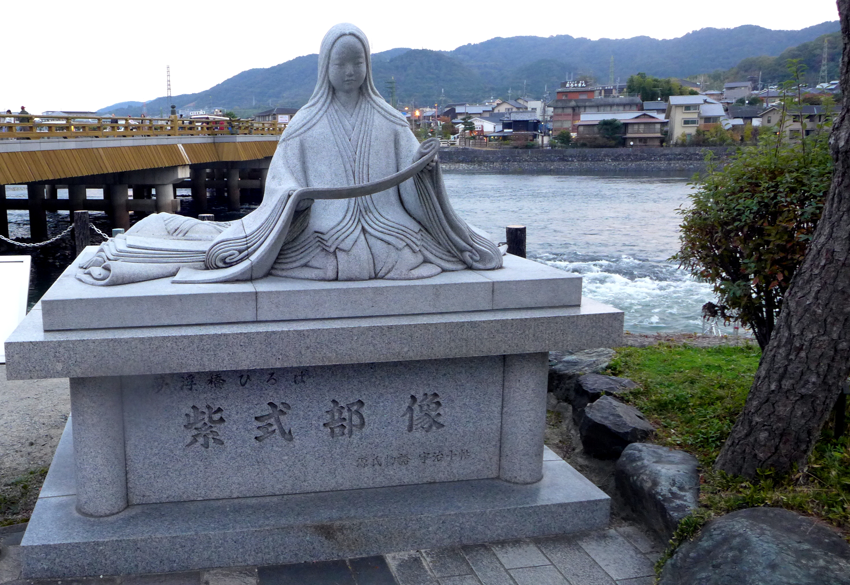 On the way back to the station we passed the river. This is the Yodogawa (淀川) which flows from lake Biwa in the North East of Kyoto down to Osaka bay. It actually changes its name throughout its route and at Uji it is known as the Uji river (宇治川). By the river is a statue of Murasaki Shikibu, the author of the Tale of Genji – the final 15 chapters of the tale take place in Uji.